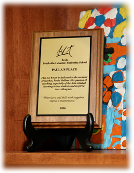 This Art Room is dedicated to the memory of teacher, Paula Gallant.