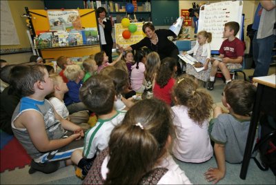 Children's book author Louise Christie reads her new book Miss Gallant's Favourite Season to Mary Stone's Primary students at Beechville-Lakeside-Timberlea Elementary School on Thursday. The book is dedicated to murdered art teacher Paula Gallant, whose body was found in her car in the school's parking lot in December 2005. (ERIC WYNNE / Staff)